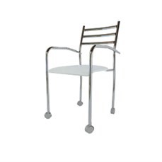 Faça a locação de cadeira cromada com assento em courino na FW Móveis. Essa cadeira possui as seguintes dimensões: 0,46m altura do assento; altura do encosto 0,88m e 0,41m de profundidade e largura de 0,40m.